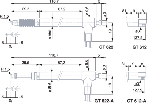 | Щупы GT 612 с осевым выходом кабеля | |||||