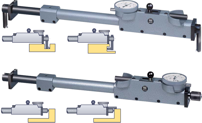 Позволяет измерять методом сравнения большие внутренние и наружные размеры. Состоит из измерительного инструмента со сменными измерительными стержнями и комплектом насадок без встроенных мер.