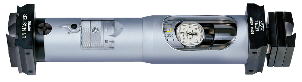TESA UNIMASTER в своей основе аналогичен нутромерам с двухточечным контактом. Сделан специально для прямого измерения любых размеров в пределах области применения с использованием нужных насадок со встроенными концевыми мерами.