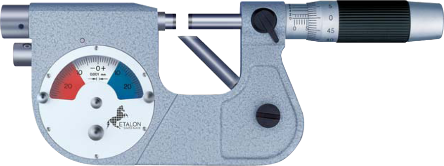 • Номинальный размер выставляется на микрометре, а отклонения считываются при помощи индикатора часового типа.
