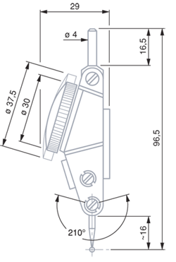 • Рычажная система на подшипнике с измерительной вставкой, отклоняющейся на 210°.