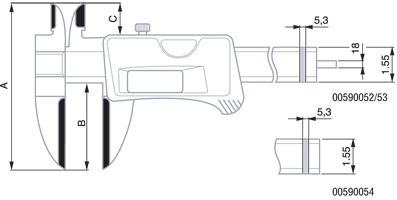 | № Модели | Длина, мм | Лапка для измерения глубины | А, мм | В, мм | С, мм | Вес, грамм |