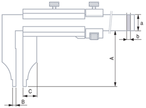 № МоделиДиапазон измерений, ммЦена деления, ммa, ммb, ммA, ммB, ммC, мм