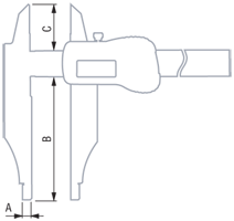 Модель со скругленными измерительными поверхно-стями для измерения внутренних размеров и ножевидными измерительными поверхностями для измерения наружных размеров.